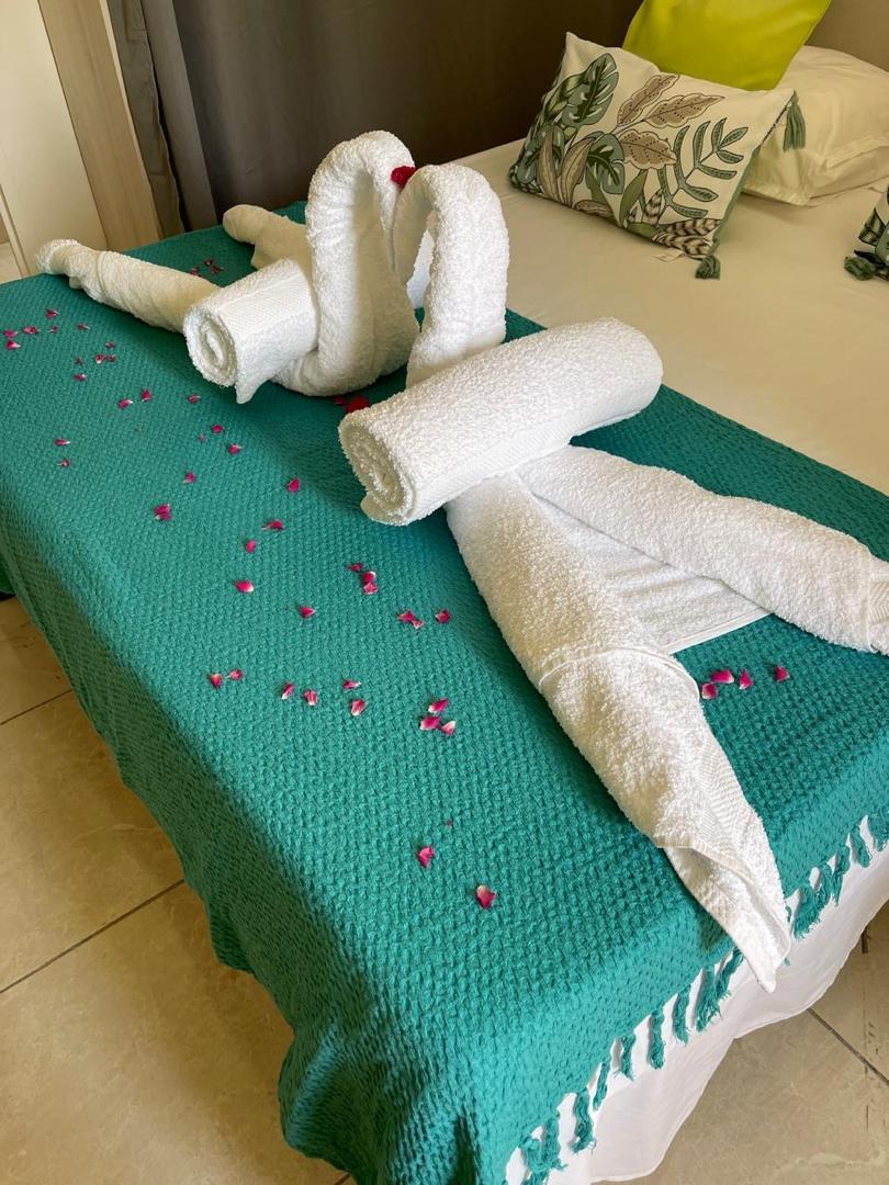 Le bungalow PASSION a une capacité d’accueil de 3 personnes, avec une chambre ayant un lit double et un lit d’appoint à la demande.